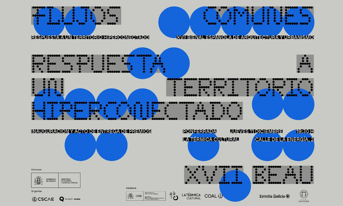 El Ministerio de Vivienda y Agenda Urbana, anuncia la ceremonia de entrega de premios e inauguración de la exposición de la XVII Bienal Española de Arquitectura y Urbanismo (XVII BEAU) bajo el título de Flujos Comunes: Respuesta a un territorio hiperconectado.
